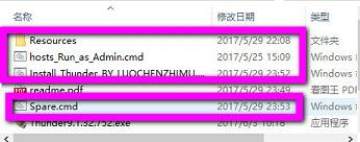 3、运行Thunder9_BY_LUOCHENZHIMU.exe后,将会在当前目录释放 Resources、Install_Thunder_BY_LUOCHENZHIMU.cmd、Spare.cmd、hosts_Run_as_Admin.cmd,可以不用理会。