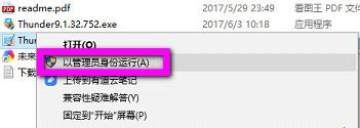 2、安装成功后一般迅雷会自动启动,先关掉,然后右键管理员权限运行Thunder9_BY_LUOCHENZHIMU.exe