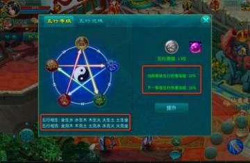 3)消耗五行丹可提升五行等级,每提升1级增加1%的相生相克加成;激活过主属性后,可消耗的五行丹来进行属性切换。