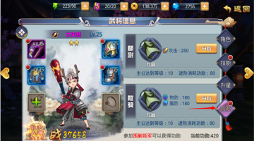 1、主信息界面介绍了武将的各项属性与资质以及羁绊。