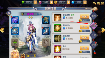 2、技能标签可查看当前武将的技能信息,方便玩家们对技能的使用和升级进行操作。