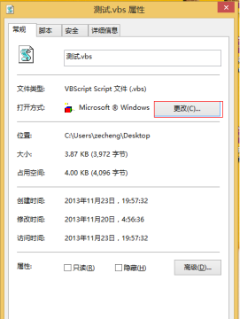 选择要编译的Vbs源码,右击鼠标点击属性;跳出VBS源码属性界面;