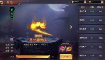 当上述玩法体验完之后不知所措怎么办?这时少侠们只需打开剑池系统,便可看到尚未完成的任务。其中支线任务、帮派任务、各进阶副本等都会提供大量经验奖励。