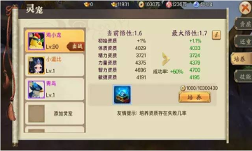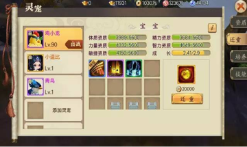 获得一只适合自己的宠物后,第一道打造工序便是还童。获得高成长和高资质以达到大幅度提高战力的目的!