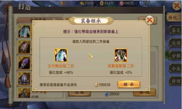 继承功能完美了解决了这个难题,低级装备往同级或高级装备继承。灵气再也不用担心浪费了,放心强化吧!
