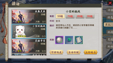 1,多人副本小宝的挑战,分别为59级,69级,79级,89级,99级产出特殊灵宠。