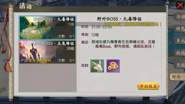 2,击杀野外boss西域右使九毒尊者,产出稀有灵宠变异灵狐。击杀野外boss西域左使五鬼天王产出变异青鸟。