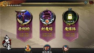 进入组队副本可以看到奈何桥、封魔塔、魔像阵玩法。通过这些晚饭而已获得大量的伙伴碎片、神兽图腾、元魂丹等稀有材料。组队副本分为三个难度,难度越高产出就越高。