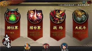 进入PK竞技就可以看到各种PVP玩法,有排位赛,擂台赛,大战场,大乱斗。排位赛和擂台赛是单人PK,大乱斗和战场斗是多人PK玩法。