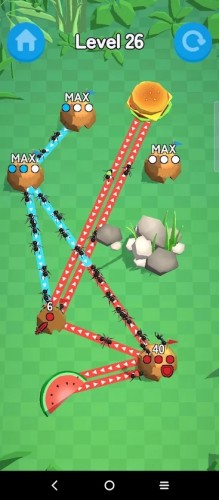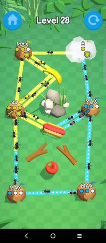 休闲益智类游戏。游戏非常考验玩家的策略,你需要在不同的地区中放置蚂蚁士兵,战胜对手,抢占红蚁女王的地盘。游戏的画风非常的清新,每一关的地形设计都是不同的