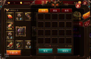 许愿系统里面到底有什么物品呢,超强神装、绝世坐骑、海量宝物等。每当假日活动期间,许愿获得神装概率提高3倍。另外,许愿十连许打九折哦!