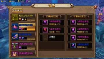 宝石又分攻击宝石和防御宝石之分,攻击宝石有:物攻、法功、命中、暴击四种,防御宝石有:生命、物防、法防、闪避和爆抗五种属性。