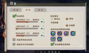 剑侠忙碌了一天,是否也有感到疲惫的时候?在游戏里可以点击右上角的自动挂机功能来解放双手,实现一键式打怪。而挂机时释放的技能、吃药可以通过设置里的功能自定义,让剑侠玩的更尽兴方便。