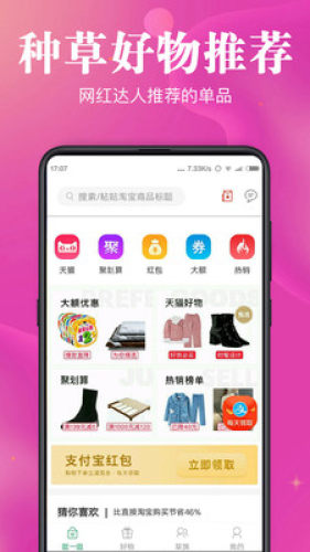 种草App,会根据你的喜好推荐给你感兴趣的内容和商品,我们提供了优质的合作商家确保商品的质量,通过一键种草除了购买更省钱之外,还可以享受额外的服务,如高佣返利、真人导购等。