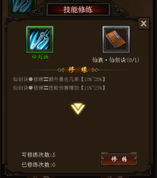 每一大类技能学习,都会增加修为,修为提升,即可获得额外的属性。
