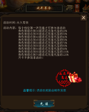 首次充值每个档位,升级即可获得返还,越!早!越!划!算!