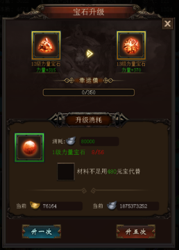 宝石可以使用1级宝石或直接使用元宝,对已镶嵌宝石进行升级。