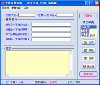 你是否暗恋一个人,是否喜欢一个人,是否疯狂地追一个人,你一定想知道自己和心中的他(她)的缘分!如果没说错的话,就赶快下载《大话水晶情缘》下来吧!它一定会给一个满意的答复!记住:两个人相遇就是一种缘分,两个人走到一起更是一种缘分!【不可不信缘】!2009新增缘分测试、帮你写情书、恋爱技巧等功能。