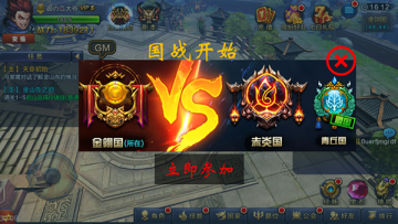 国战发起后,攻守双方需要通过集体PK达到各自目标,国战的参与等级为30级。