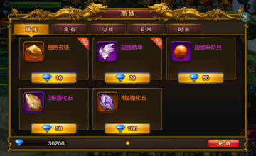 点击游戏界面右上方商城按钮可打开商城界面,玩家可选择不同的页面购买到不同的物品,相应也会消耗不同数量的钻石。