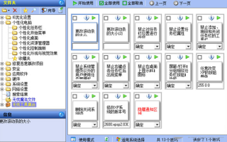 软件自身集成了近千个实用的系统设置技巧,能够轻松地对磁盘、桌面、系统运行速度、网络、系统安全、硬件、办公和应用软件、系统个性化、多媒体等进行全方位的设置、优化、维护和清理。激发电脑潜能,锁定不想被使用的功能,使电脑运行更趋稳定、快速、安全和更适合自己的使用习惯。