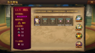 3、公会贸易:每天可以进行2次公会贸易,根据英雄属性进行队伍配置,贸易可以获得大量工会荣誉,更有超好福利的排名奖励等你来挑战