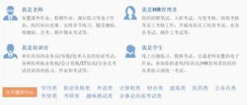 学历类、职业资格类、外语类、计算机类、财会类、建筑类、医药类、公务员类、外贸类、考研类、趣味测试类、企事业内部考试类......几乎全部涵盖各种考试。