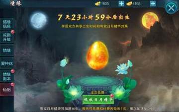 2.吸收日月精华可加速出生,双方每天可免费和付费各吸收一次,每次加速6.0小时。