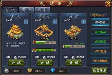 内政是一个城池战斗实力的基础,决定了城池内的武将和兵力值数量。只有将内政经营好,城池才有可能建造等级更高的资源建筑和科技建筑。