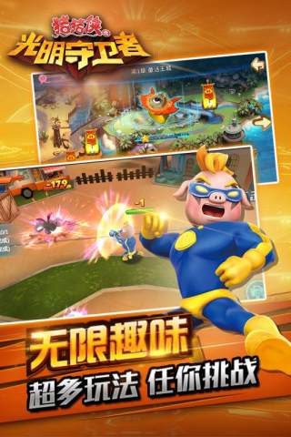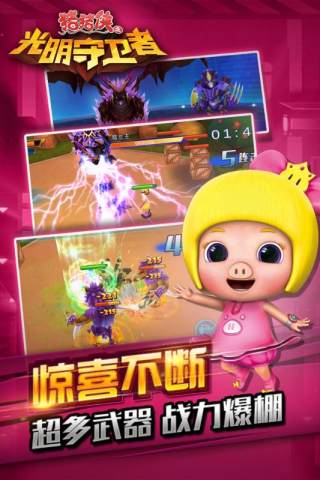 猪猪侠与魔界怪物之间的对决开始了!为了抵抗魔界入侵童话世界,作为光明守卫者的猪猪侠们将要与魔龙王展开决战!猪猪侠为大家准备了抵抗魔界入侵的武器,快来使用各种射击武器及炫酷技能消灭怪物,与猪猪侠一起并肩作战吧!