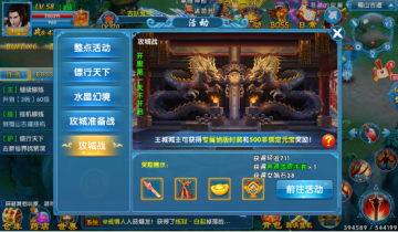 攻城准备战在每周一三五20:00—21:00打响,进入后参与采集、打怪、打BOSS、PK等活动,可以获得准备战奖励。参加攻城准备战不仅能获得声望奖励,更重要的是获得攻城战中极其重要的兑换卡。变身卡分为BOSS兑换卡、器械兑换卡和技能兑换卡三种,主要有爆发、防御、辅助三种效果。