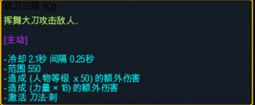 技能e会向前突进一段距离 途中触碰到敌方单位会触发刀法破