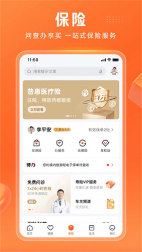 2、【保险】-频道升级构建保险资金区、优化核心服务展示、上线添平安产品+服务、新增本地资讯功能等
