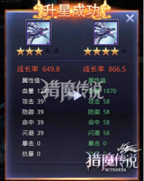 升星:需要消耗指定数量同名碎片,升星后会提高基础属性及成长;