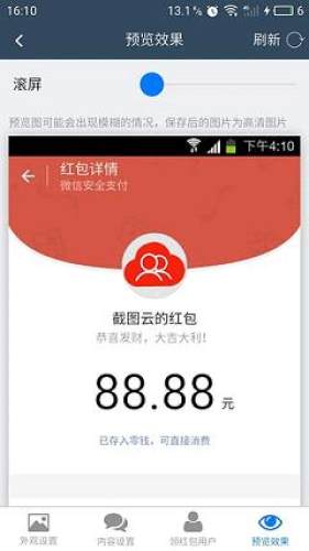 使用截图宝去水印破解版,不管是微信截图还是支付宝截图,统统干净无水印,为各位用户提供了强大的转账、红包装逼功能,万分确保超真实不被发现。