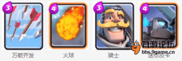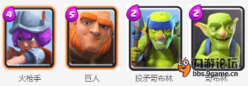 利用巨人后置攒下的费用优势铺出大量的兵种在巨人身后辅助进攻,争取一波打下对手。卡组没紫卡对首抽没有要求,属于人人能配的卡组。