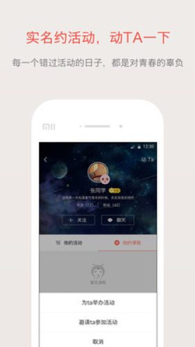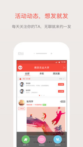 好动校园帮您对接周围各种兴趣相投、情感类似的人群。方便找到志同道合的校友,让大学生活不再迷茫和空虚!