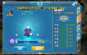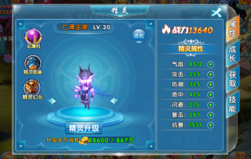 成长:可以使用精灵之魂来提升当前精灵的成长阶级,每只精灵有15阶,阶级越高,战力越高。