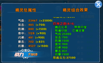 左上角的总属性按钮可以查看整个精灵系统的战力总和。