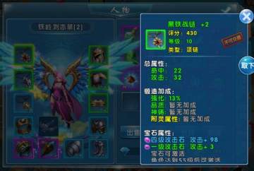 在《决战魔域》中,每个玩家都有12个装备位。装备部件包括:武器、护符*2、头盔、戒指*2、衣服、腰带、裤子、鞋子、项链。装备属性主要包括气血、攻击、防御、命中、暴击、闪避等。随着主线任务的进行和角色等级的提升,装备逐步到手。