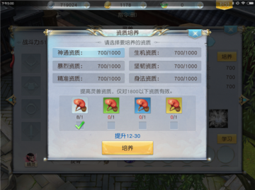 4、灵兽培养 点击“培养”按钮,可以利用物品“X年灵芝”对灵兽进行培养,可增加灵兽的各种资质;