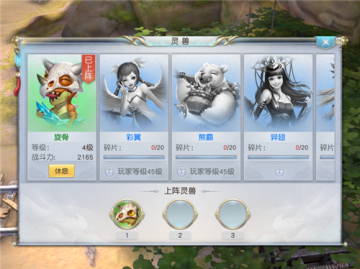 1、灵兽界面 点击主界面右侧的“灵兽”选项可以查看当前拥有的灵兽数量和形象;