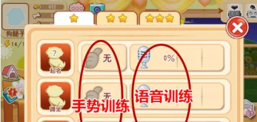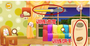 训练过程中玩家需要不断的重复一个划屏手势或者语音,而小狗不一定每次都能做出相应的动作,当成功做出动作的时候训练进度会上涨,当训练失败的时候可以通过使用训练饼干的方式增加训练进度;