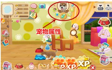 宠物属性面板是通过点击宠物显示的,面板内容包括宠物的各项基础属性,包括饥饿度、口渴度、清洁度、开心值四个属性,我们需要做的就是保持4个数值在较高的水平甚至满值;