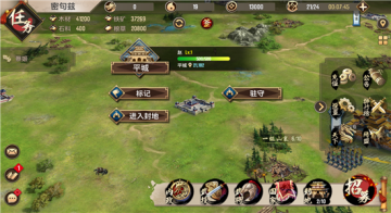 地图的最开始端便是我们自己的封地城池,在兵粮充足的情况下可以选择进攻周围的城池,如果攻下了周围的城池便可以成为我们的封地,可以随意支配城池中的资源以及进入封地。如果成功攻下城池转为封地后一定要让兵将驻守在城中以免被周围敌军攻城侵占。