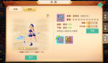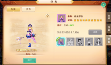 根据角色性别展示该系列的角色外观,内置淬炼功能,提升外观附加属性并且获得永久使用权。