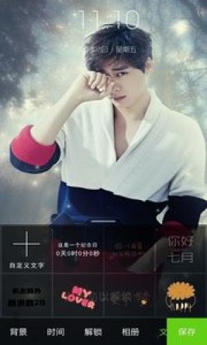 2.点击详情界面右上角的魔棒按钮:编辑自定义文字;:更换锁屏背景;编辑解锁音效;更换锁屏密码;更换手机壁纸,多种功能随您DIY.