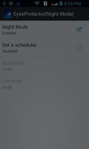 保护眼睛可以有效的保护你的视力,减少视疲劳。 这个版本有一种模式可供使用,即夜间模式。 当你的周围光线较弱时,开启夜间模式可以保护你的眼睛免受过强的手机光线的刺激。你也可以设定开启/关闭夜间模式的时间,一旦设置完成,达到设定时间时,夜间模式将自动的打开/关闭。免去手动开启/关闭夜间模式的烦恼。 保护眼睛中使用的所有颜色参数均由眼科专家给出,请放心使用。如果你使用的是AMOLED屏幕,保护眼睛也可以延长这种屏幕的寿命。 即使使用了保护眼睛,也请不要长时间盯着手机看,祝大家都有好的视力。 请注意:若开启保护眼睛后点击某些按钮失效,请不要紧张,请暂时关闭保护眼睛,这是因为这类按钮的安全级别比较高,不允许有其它图层覆盖在其之上。