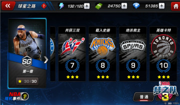 对于初出茅庐的玩家而言,球星之路是实现篮球梦想的第一步,也是大家积累实战经验,磨砺战术的筑梦基地。关卡将会随着挑战的深入逐渐增加难度,每个关卡达成3星目标即可开启扫荡功能,且每个章节达到一定的星星数量还能领取对应的球员碎片奖励。因此,玩家们在挑战球星之路的时候,一定要记得先了解本关的星级条件,方能无往不利。球星之路还被分为普通和精英两种难度,无论是从体力消耗,还是挑战难度上来看,精英关卡都远远难于普通。不过,与较高的体力消耗与难度相对应的,是更丰厚的经验与道具奖励。