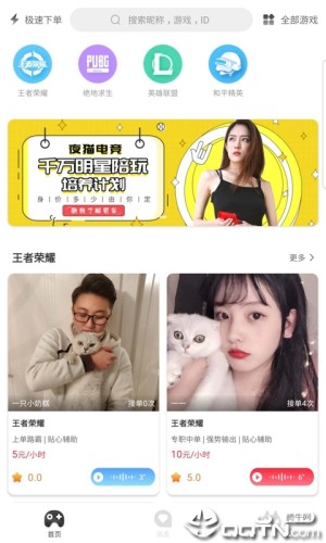 夜猫电竞app,只需三步,空闲时间打游戏,不仅可以交友,还可以赚钱,支持王者荣耀、绝地求生、英雄联盟以及和平精英等时下热门手游、端游。